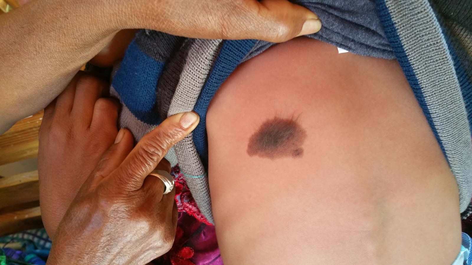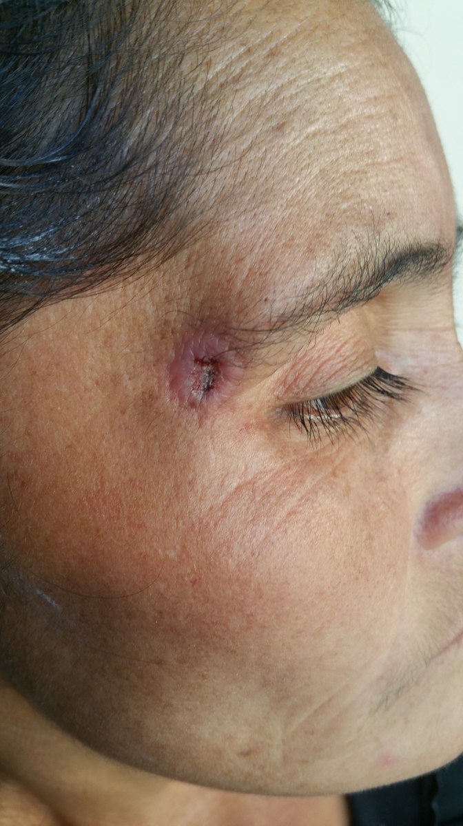 This lady came to the clinic in Canillá because she had this itchy spot on her face for a couple of years. It didn’t get better with any cream. With that story and its appearance, it almost certainly was a basal cell carcinoma. This is a common form of skin cancer that rarely metastasizes but can cause significant skin ulcers that spread locally.