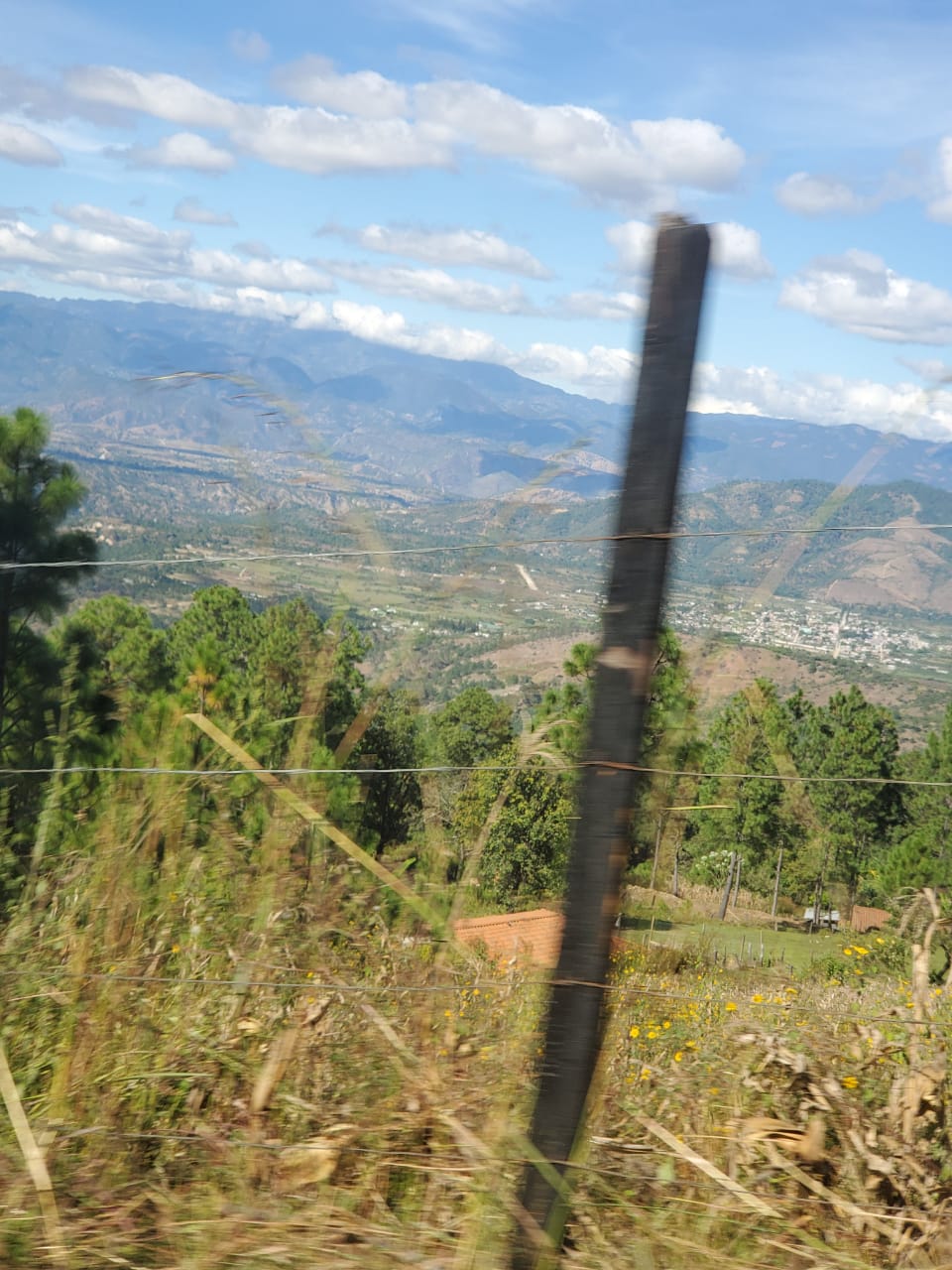 Conduciendo de regreso por la montaña. Puedes ver la pista de aterrizaje y Canillá.